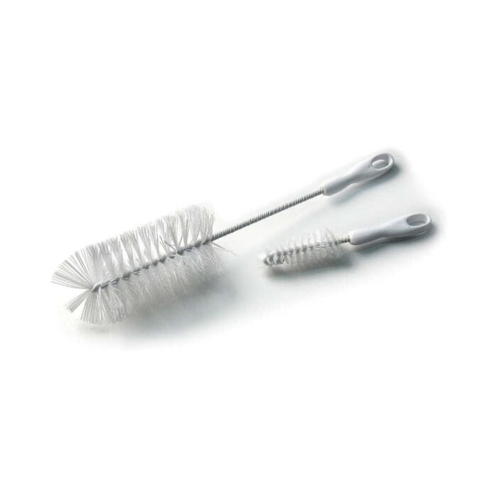 Grâce aux 2 brosses et goupillon de nettoyage pour biberon et tétine de la marque allemande REER, Les biberons et tétines de bébé seront propres en un clin d’oeil! La brosse à biberons et tétines de Reer est dotée de poils solides et peu déformables. Ceux-ci permettent un nettoyage en profondeur pour pouvoir réutiliser les accessoires au plus vite. Grâce à elle, le fond et les bords seront parfaitement propres. Une attache est intégrée au manche. L’ensemble est conçu en plastique, nylon et métal.